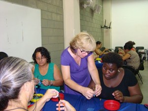In addition to her designs, she gives workshops on awareness and retraining for people to learn the importance of separating waste and reuse materials that felt useless.