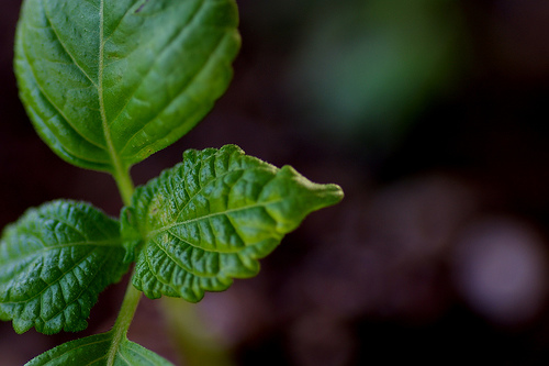 El recipiente pequeño tiene berenjena con hojas de Perilla. Foto por Nemo's great uncle, usuario de flickr