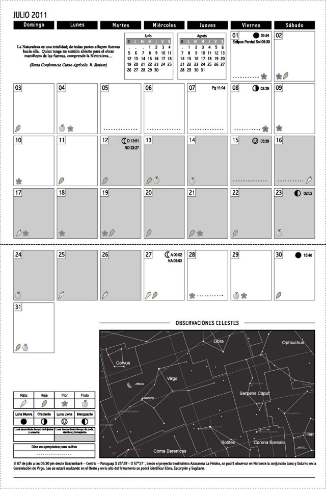 Calendario Biodinámico Julio 2011 de René Piamonte