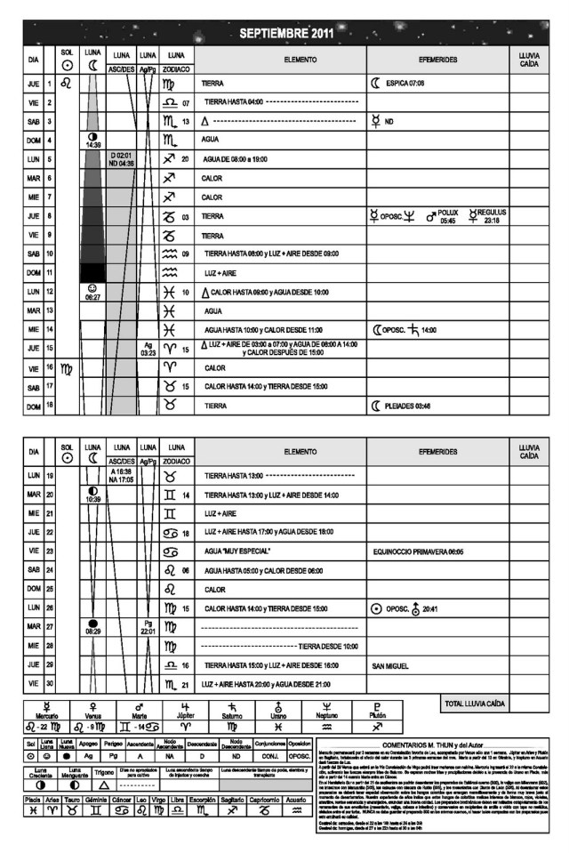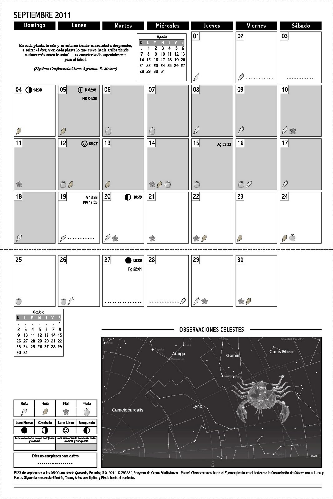 Como los últimos meses, les dejo el calendario biodinámico de Septiembre 2011 adaptado por René Piamonte. Ya saben, algunas anotaciones a considerar: