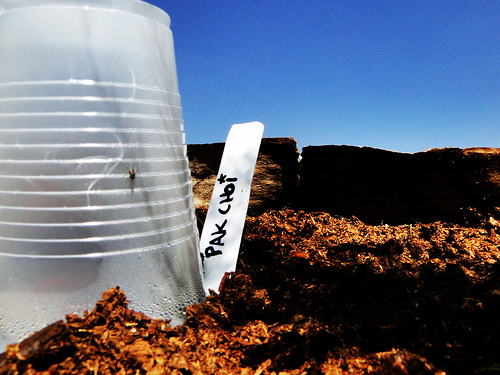 Usa algún vaso o envase transparente con perforaciones si haces siembra directa (como en la foto) para imitar un sencillo y pequeño invernadero.