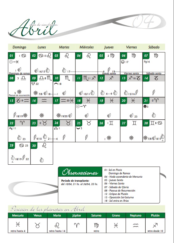 Calendario biodinámico Abril 2012