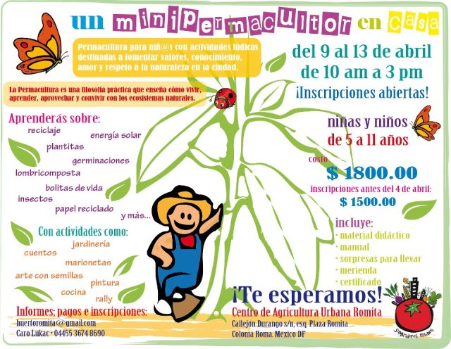 Dos de mis amigas estarán dando éste taller la próxima semana, está enfocado para niños y harán varias actividades con la intención de fomentar actitudes más ecológicas. Les comparto el cartel: