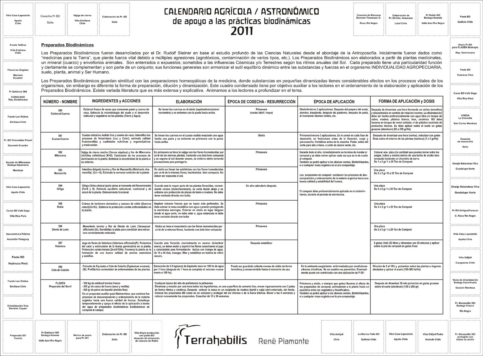 Me gustaría decirles que le he enviado un mail a René, espero que me responda y si es así ya les tendré noticias. Sin más, les dejo el calendario para este año con algunos preparados biodinámicos que René nos comparte: