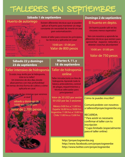 Talleres de huerto urbano, hidroponía en agosto 2013 proyectogreenbe.org